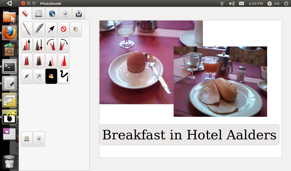 List of Backup ApproachNot surprisingly, when I approach this problem in Photobomb, I followed the same basic solution path. For example, I set up a list to store undo actions in. I then started storing a code for actions like I used for delete and insert in the text editor. However, I quickly ran into some problems. Photobomb is more complex then TextEditor, and GooCanvas is more complex than TextView/TextBuffer. For example, storing all the info needed for undoing and redoing a clipping path on an object required some more complex code than seemed right for the problem. So, I switched to the second approach.