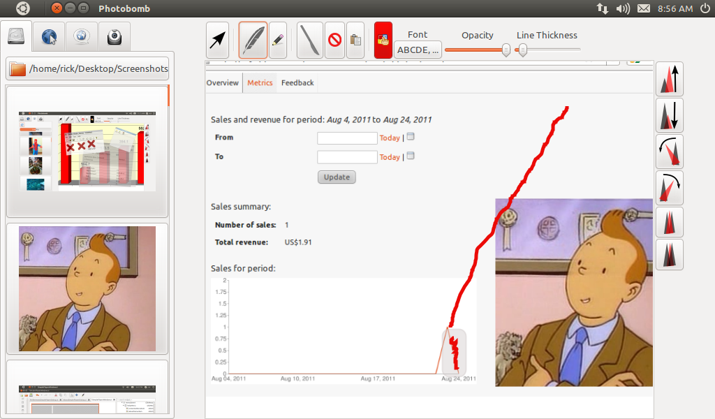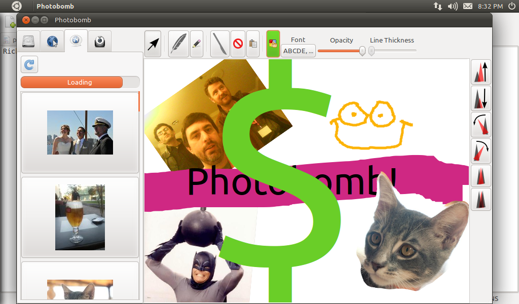 Finishing TouchOne last finishing touch is to ensure that the undo and redo menu items are only sensitive if there is anything in the undo and/or redo stacks. Photobomb handles this by connecting to the activate signal of the edit menu, and then checking if there is anything in the undo and redo lists, and setting the sensitivity accordingly.